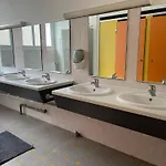 Cet établissement Maison familiale près du Zoo et du circuit - FR-1-410-463 comprend une salle de bains avec une douche et une machine à laver.